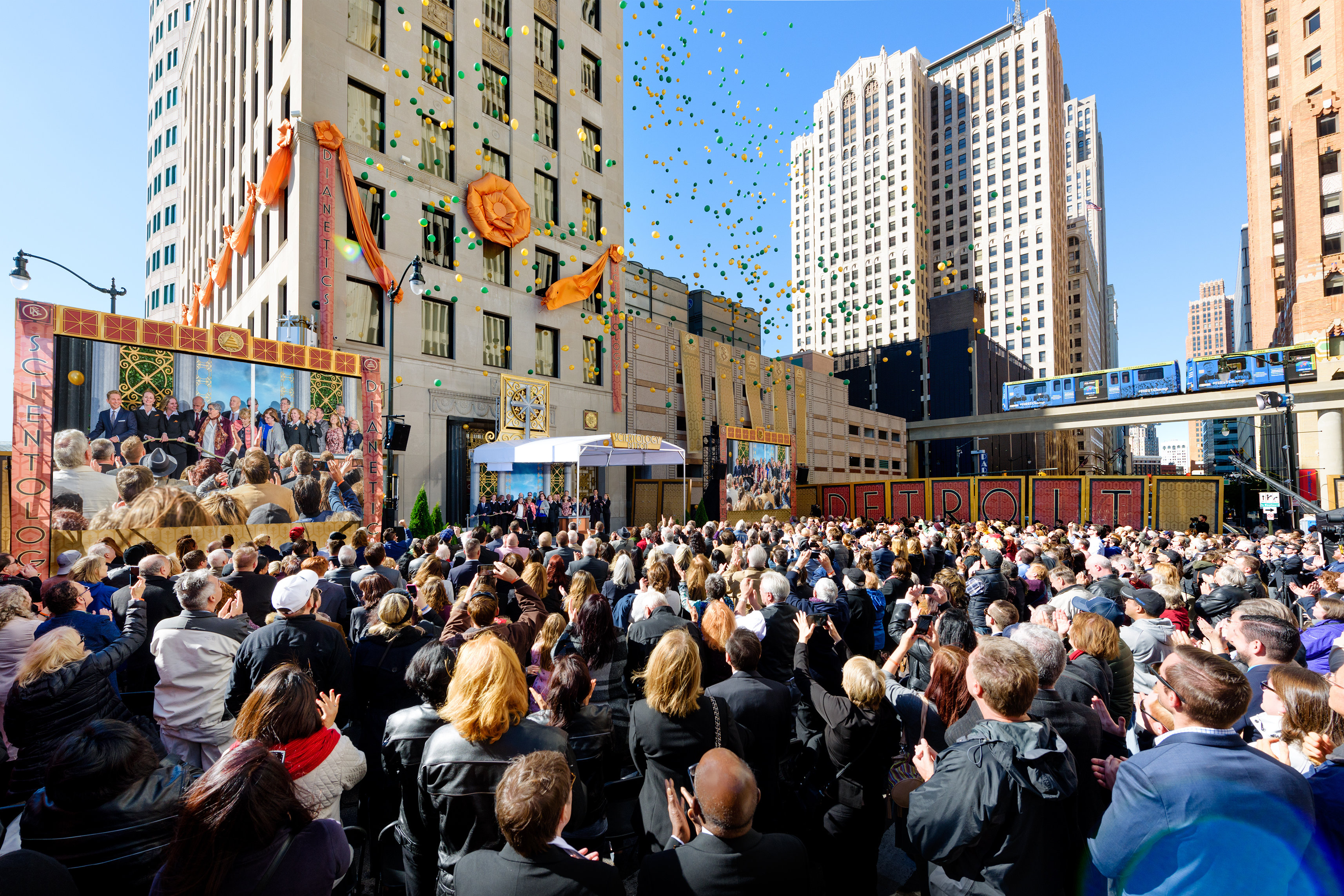 Στο κέντρο του Allentown Historic District, Scientologist, φίλοι τους και συνεργάτες της κοινότητας γιορτάζουν τα εγκαίνια της αναπαλαιωμένης τους Beaux Arts έδρας που χτίστηκε αρχικά το 1898.