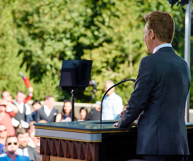 «Σήμερα σηματοδοτούμε άλλη μία μνημειώδη ολοκλήρωση με μια τελετή εγκαινίων που σίγουρα δε μοιάζει με καμία άλλη», είπε ο Ντέιβιντ Μισκάβιτς, Πρόεδρος του Συμβουλίου του Κέντρου Θρησκευτικής Τεχνολογίας και εκκλησιαστικός ηγέτης της θρησκείας της Σαηεντολογίας. «Γιατί πού αλλού θα μπορούσε κανείς να εγκαινιάσει έναν νέο Ανώτερο Οργανισμό που να είναι τόσο μαγευτικός όσο αυτός εδώ; Ή, εν προκειμένω, πού αλλού θα μπορούσε κανείς να προσφέρει τη διαχρονική ελευθερία της αιωνιότητας στην πιο πυκνοκατοικημένη ζώνη στη Γη; Λοιπόν, αυτό ακριβώς εγκαινιάζουμε σήμερα καθώς κόβουμε την κορδέλα των εγκαινίων για τον νέο σας Ιδανικό Ανώτερο Οργανισμό για την Αυστραλασία!»