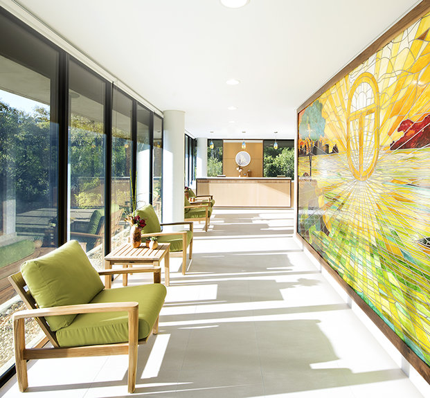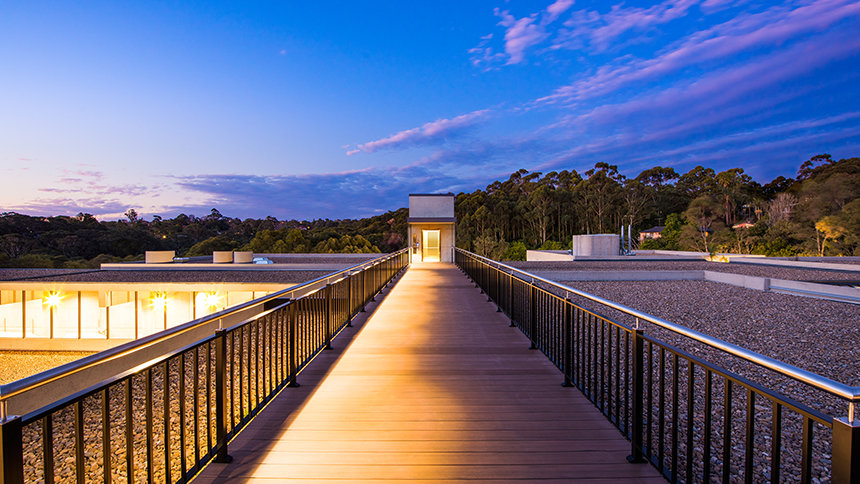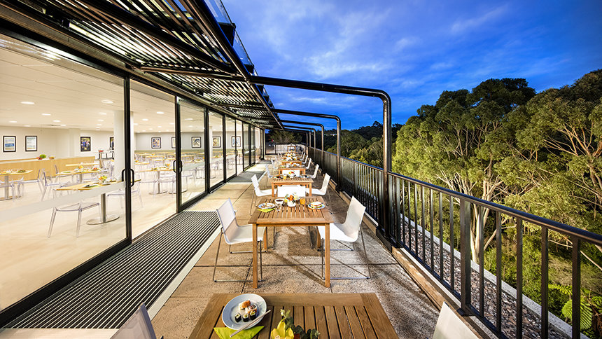 Το υπερσύγχρονο οικοδόμημα παρουσιάζει ένα μινιμαλιστικό στυλ, καθώς το γυαλί που εκτείνεται σε πολλούς ορόφους αναμειγνύεται με ένα εντυπωσιακό τοπίο από μπετόν αρμέ. Έξω, το ρυάκι Μπλου Γκαμ διέρχεται μέσα από το δάσος ευκαλύπτων που καλύπτει 34 στρέμματα. Πρόκειται για έναν πραγματικό Κήπο της Εδέμ στην καρδιά της μητροπολιτικής περιοχής του Σίδνεϊ.