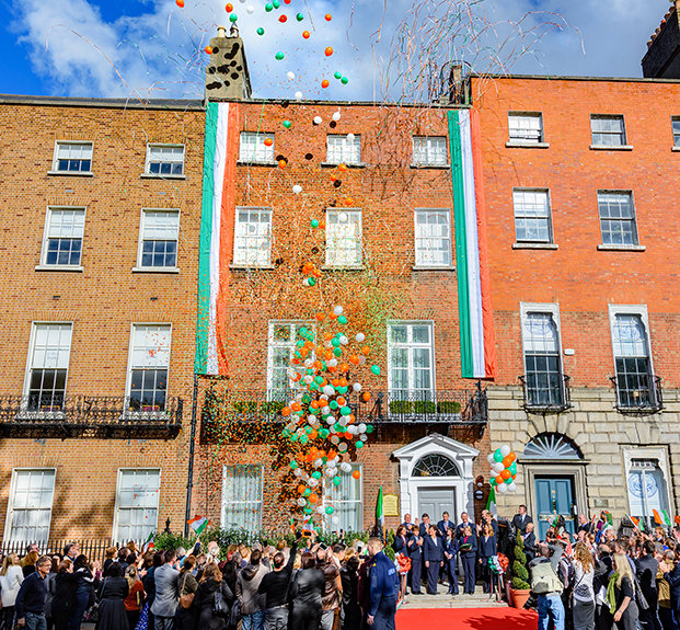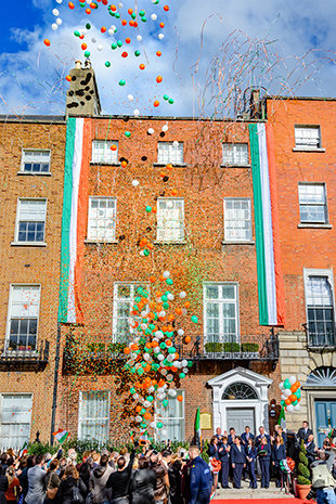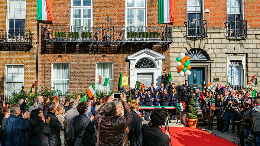 Το νέο Γραφείο Εθνικών Υποθέσεων απέχει μόλις μερικά τετράγωνα από τα πιο φημισμένα εθνικά μνημεία της Ιρλανδίας στα οποία συμπεριλαμβάνονται η Εθνική Πινακοθήκη, το Μουσείο Εθνικής Ιστορίας, το Κολέγιο Τρίνιτι και το Λένστερ Χάους, που αποτελεί έδρα του Κοινοβουλίου. Το ιστορικό κτίριο αποτελεί κλασικό δείγμα της εξαιρετικής γεωργιανής αρχιτεκτονικής του Δουβλίνου και χρονολογείται από τη δεκαετία του 1760, πολύ πριν τη γέννηση της αμερικανικής δημοκρατίας και πριν από τη μεγάλη μετανάστευση ιρλανδικών οικογενειών σε εκείνες τις δυτικές ακτές. Τώρα, περισσότερο από δύο αιώνες μετά, έχει γίνει η έδρα για την αποστολή της Εκκλησίας που επεκτείνεται στην Ιρλανδία.