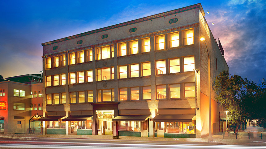 Αυτό το κτήριο που χρονολογείται από τον 19ο αιώνα, διατηρεί ένα μοναδικό συνδυασμό στοιχείων του παλιού και του νέου και βρίσκεται σε μια από τις πιο πολυσύχναστες, γεμάτες πεζούς, περιοχές του Λος Άντζελες. Η κληρονομιά του αντικατοπτρίζεται στο αναπαλαιωμένο εξωτερικό σε στυλ Μποζ Αρ, στο κλασικό τετραόροφο αίθριο με φεγγίτη, καθώς και στην επίπλωση και στα παράθυρα με γυάλινα χειροποίητα βιτρό.