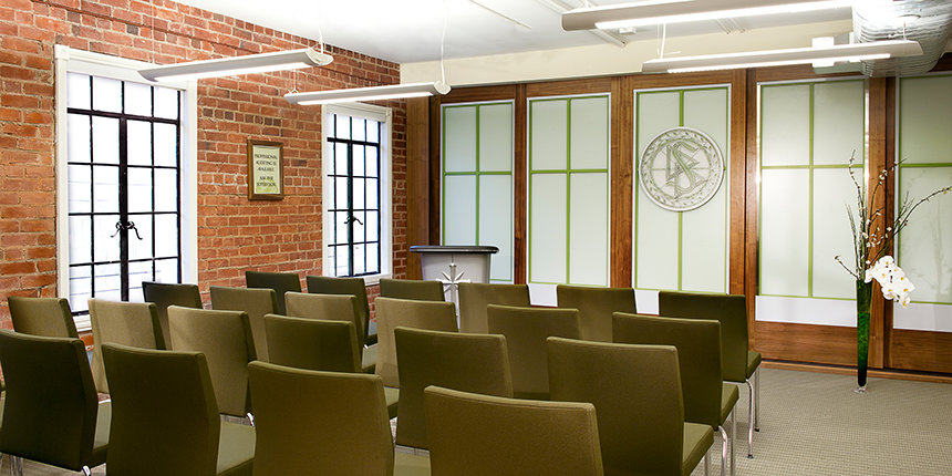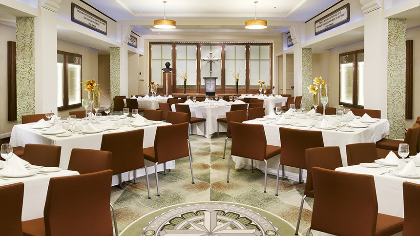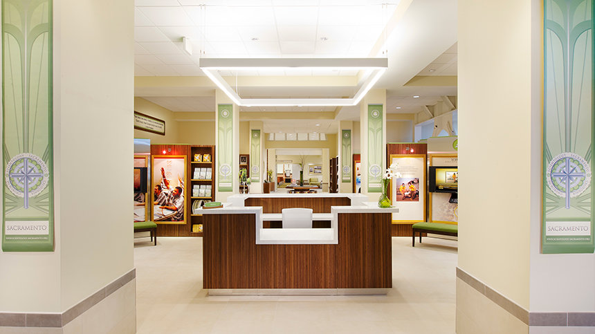 Το νέο σπίτι της Εκκλησίας, που βρίσκεται μόνο λίγα τετράγωνα μακριά από το Καπιτώλιο είναι ένα από τα αρχιτεκτονικά ορόσημα της πόλης. Αρχικά άνοιξε το 1930 ως το ξενοδοχείο Ραμόνα και σχεδιάστηκε από τον πρώτο αρχιτέκτονα της πολιτείας. Το κτίριο του Σακραμέντο αποτελεί το καλύτερο παράδειγμα Αναβίωσης του Ισπανικού Αποικιακού στυλ. Η Εκκλησία ανακαίνισε σχολαστικά το κτήριο, αποκαθιστώντας τα αρχικά του χαρακτηριστικά του στην αρχική τους δόξα, όπως τα μαρμαροκονιάματα, τα διακοσμητικά τούβλα, τα πλακακια, τους διακοσμητικούς τόνους σιδήρου και την αρχική επιγραφή. Όλη η ανακαίνιση της Εκκλησίας στο κτήριο αυτό σχεδιάστηκε και εκτελέστηκε για τις ελάχιστες περιβαλλοντικές επιπτώσεις και τη μέγιστη βιωσιμότητα, βάσει των στάνταρ πιστοποίησης του Συμβουλίου για Πράσινα Κτήρια και Ενεργειακού και Περιβαλλοντικού Σχεδιασμού (LEED).