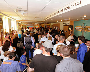 Ο κ. Ντέιβιντ Μισκάβιτς, Πρόεδρος του Συμβουλίου του Κέντρου Θρησκευτικής Τεχνολογίας και εκκλησιαστικός ηγέτης της θρησκείας της Σαηεντολογίας, τέλεσε τα εγκαίνια και έδωσε συγχαρητήρια στους Σαηεντολόγους που στάθηκαν στην πρώτη γραμμή στον αγώνα για την οικοδόμηση της καινούριας Εκκλησίας.