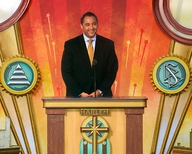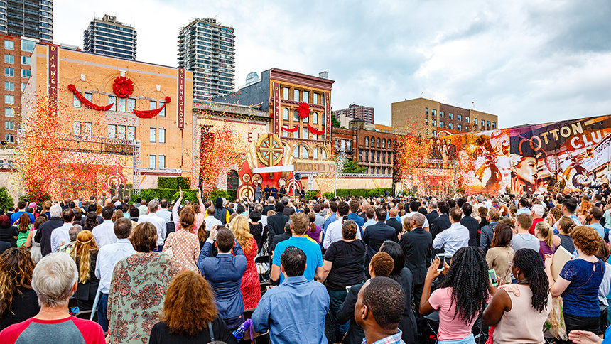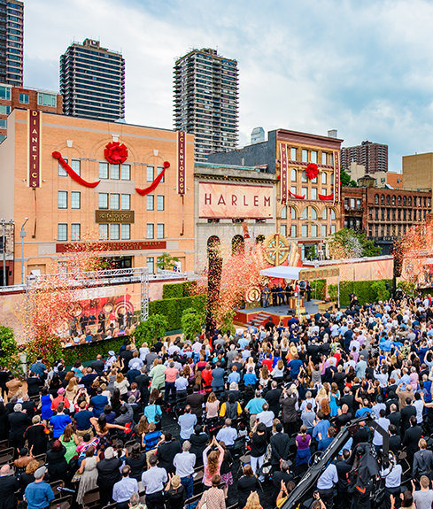 Η συνεχιζόμενη βροχή σταμάτησε –ακριβώς την κατάλληλη στιγμή– λίγα λεπτά πριν ξεκινήσει η τελετή. «Δεν υπάρχει κανένα άλλο μέρος όπως το Χάρλεμ», είπε ο Ντέιβιντ Μισκάβιτς, Πρόεδρος του Συμβουλίου του Κέντρου Θρησκευτικής Τεχνολογίας και εκκλησιαστικός ηγέτης της Εκκλησίας. «Οι ποιητές, οι θεατρικοί συγγραφείς, οι ζωγράφοι, οι συγγραφείς και οι μουσικοί της αναγέννησής σας, ακόμα και μια απλή αφήγηση των ονομάτων τους είναι συγκινητική: ο Ντιουκ Έλινγκτον, ο Καμπ Κάλογουεϊ, η Μπίλι Χολιντέι, ο Κλοντ ΜακΚέι και ο Λούις Άρμστρονγκ. Επομένως, τι άλλο χρειάζεται να πούμε, εκτός από το ότι: “αν βγάλετε το Χάρλεμ από την αμερικανική ιστορία, τότε όλα γίνονται χλιαρά και χωρίς ενδιαφέρον”».