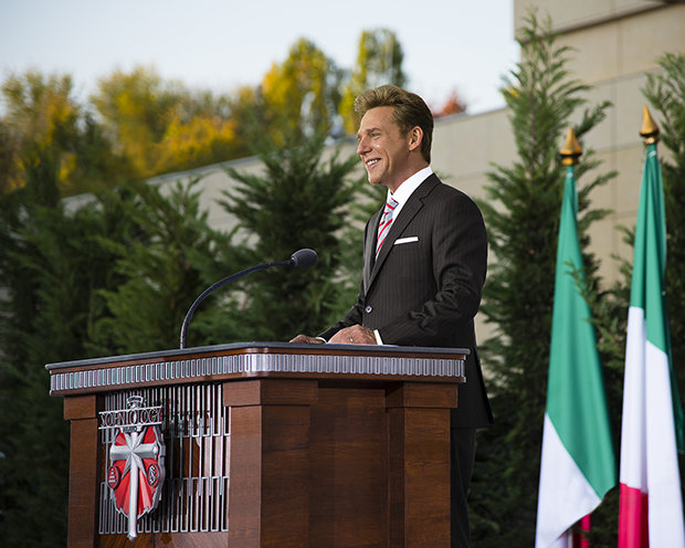 «Είναι υπέρτατη τιμή για ’μένα να βρίσκομαι εδώ μαζί σας αυτή την ημέρα, η σπουδαιότητα της οποίας ξεπερνά τη σπουδαιότητα όλων των προηγούμενων ημερών. Γιατί, εάν υπήρξε ποτέ μια πόλη η οποία προοριζόταν να είναι η έδρα ενός Ιδανικού Οργανισμού, αυτή τότε είναι το Μιλάνο σας. Αυτή η πόλη που συνδυάζει το μεγαλείο από την παλαιά εποχή και το όραμα μιας νέας εποχής. Αυτή η πόλη της δόξας και των σημαντικών ανθρώπων. Αυτή η πόλη, όπου η ενέργεια ξεχύνεται από τους δρόμους της και η δημιουργικότητα βγαίνει από την ψυχή της. Αυτή η αυθεντική “Ιδανική Πόλη”. Πράγματι, σήμερα γιορτάζουμε έναν Ιδανικό Οργανισμό όσο κανέναν άλλο. Και, κατά συνέπεια, τιμούμε έναν Οργανισμό που ενσαρκώνει το ρητό του Λ. Ρον Χάμπαρντ: “Ο Ήλιος δεν δύει ποτέ στη Σαηεντολογία”. Έτσι, αφιερώνω αυτό το κτίριο σε ένα μέλλον το οποίο θα κοσμείται από μια αναγέννηση που αφορά τη Σαηεντολογία: την αναγέννηση της αιώνιας ζωής».