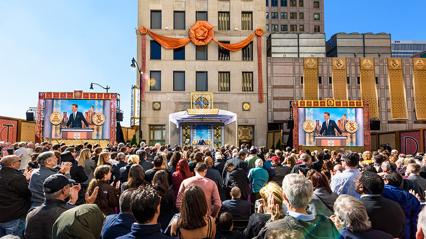 Το φόντο του μεγαλοπρεπούς εορτασμού ήταν η οκταώροφη Εκκλησία της Scientology μόλις ανατολικά από τον ουρανοξύστη στη Γουέστ Τζέφερσον 150 και ακριβώς απέναντι από τη Hart Plaza του Ντιτρόιτ. Η τοποθεσία είναι ένας αληθινός ακρογωνιαίος λίθος –χώρος του πρώτου κτηρίου στο Fort Pontchartrain– που αργότερα θα γινόταν η πόλη του Ντιτρόιτ. Ενώ, για να προσθέσουμε επιπλέον νόημα στην ιστορία, αυτό το κτήριο ήταν επίσης η πρώτη εκκλησία της πόλης που χτίστηκε το 1701.