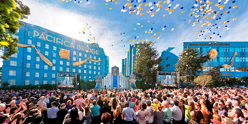 Για να υπογραμμιστεί η σημασία της περίστασης, η τελετή των εγκαινίων πραγματοποιήθηκε από τον πρόεδρο του Διοικητικού Συμβουλίου του Κέντρου Θρησκευτικής Τεχνολογίας, κ. Ντέιβιντ Μισκάβιτς. Ο κ. Μισκάβιτς απευθυνόμενος στους Σαηεντολόγους που ήταν παρόντες δήλωσε: «Σήμερα, εκπληρώνουμε το όραμα του Λ. Ρον Χάμπαρντ για μια Ιδανική Γέφυρα Πασίφικα για όλους τους Σαηεντολόγους του Λος Άντζελες και, μάλιστα, ολόκληρης της Αμερικής. Γιατί εδώ στέκουν οι φυσικοί πυλώνες μιας Γέφυρας πλέον προσιτής σε όλους στη Χρυσή Εποχή μας: Μια Γέφυρα που ενσαρκώνει την ανάβαση προς την πλήρη πνευματική ελευθερία, μια Γέφυρα που εκτείνεται όχι μόνο σε μια λεωφόρο, αλλά επεκτείνεται και στην ίδια την αιωνιότητα».