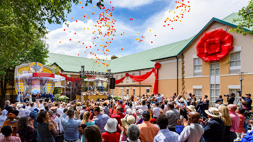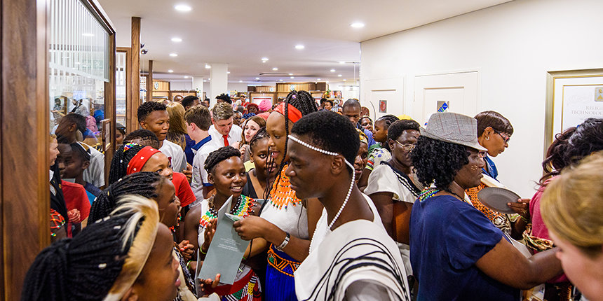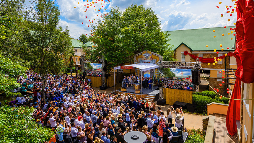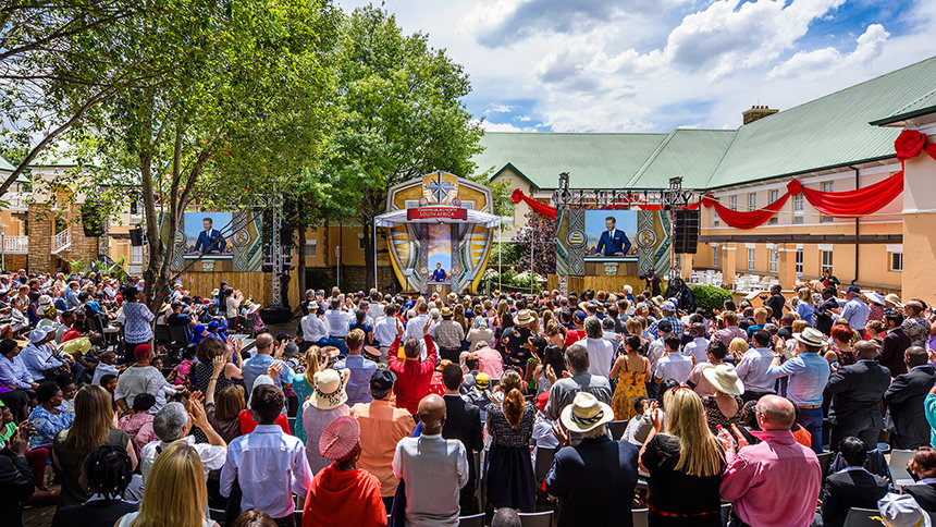 Η τελετή των εγκαινίων υπογραμμίστηκε με δημιουργικότητα και ζωηρή έκφραση, με την καθοδήγηση των μαγικών ήχων των τυμπάνων Djembe σε συνδυασμό με χορευτές παραδοσιακού χορού και τις μελωδίες μιας τοπικής χορωδίας. Οι εορτασμοί σύντομα εξελίχθηκαν σε ένα ομόφωνο καλωσόρισμα της Εκκλησίας από αξιωματούχους από όλο το Γιοχάνεσμπουργκ και την Γκαουτένγκ, προβλέποντας ένα ευνοϊκό μέλλον αφότου κόπηκε αυτή η γιγαντιαία κόκκινη κορδέλα.