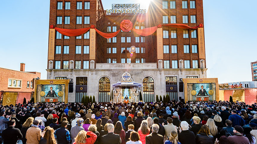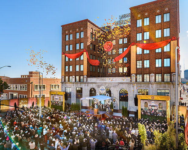 Ο Jeff Owens, ο αντιπρόεδρος του Crossroads Arts District, τίμησε το έργο της Εκκλησίας να αποκαταστήσει τη νέα τους έδρα στην καρδιά όλων: «Σωστά, η έδρα σας βρίσκεται στο κέντρο του Crossroads Arts District. Αλλά δε θεωρήσατε αυτή τη διάκριση ως δεδομένη – αναλάβατε δράση. Όταν ήρθατε και αποκαταστήσατε αυτό το πολύτιμο ορόσημο, δηλώσατε: “Δεν υπάρχει όριο στην τέχνη – θα δημιουργήσουμε ένα αριστούργημα εδώ σ’ αυτή την τοποθεσία”. Λοιπόν, έμεινα κατάπληκτος όταν μπήκα μέσα στη μεγαλοπρεπή είσοδό σας και είδα τι έχετε κάνει. Είναι μια όμορφη διατήρηση της αμερικανικής κουλτούρας του Κάνσας Σίτι. Δηλαδή, το σπίτι σας αντανακλά την προσωπικότητα του σπιτιού μας ως κοινότητα».