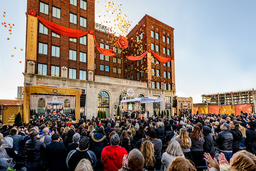 Με μια ηλιόλουστη φθινοπωρινή ημέρα να ζωγραφίζει το τέλειο φόντο, ένα πλήθος από περισσότερα από 1.000 άτομα συγκεντρώθηκαν στη 18η και Γκραντ για να καλωσορίσουν μια εκπληκτική νέα Εκκλησία της Scientology που άνοιξε τις πόρτες της.