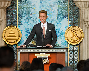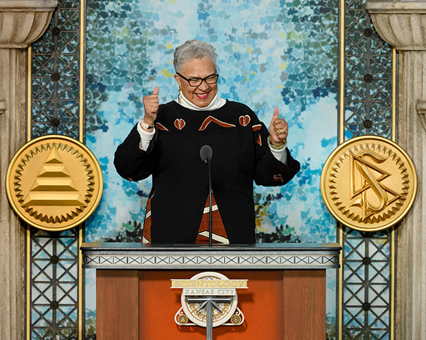 Ο κ. Ντέιβιντ Μισκάβιτς, ο εκκλησιαστικός ηγέτης της θρησκείας της Scientology, τέλεσε τα εγκαίνια. Στην εναρκτήρια ομιλία του, ο κ. Μισκάβιτς τόνισε τη σπουδαιότητα του εύθυμου πνεύματος της ημέρας προς τιμήν της νέας έδρας της Εκκλησίας στις Μεσοδυτικές Πολιτείες: «Κάνσας Σίτι, όπου, όπως λένε, οι κάτοικοι μιλούν τα πιο αυθεντικά “αμερικάνικα” σε όλες τις 50 πολιτείες, και το μπάρμπεκιου είναι το καλύτερο από οπουδήποτε στον γαστρονομικό γαλαξία. Είναι επίσης μια πόλη όπου το “εργασιακό ήθος” εξακολουθεί να είναι αυτό που ήταν πριν η λέξη “ήθος” χάσει το νόημά της. Οπότε, ναι, Κάνσας Σίτι, πάμε!».