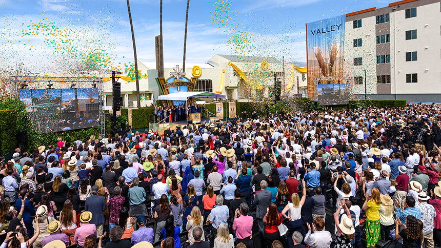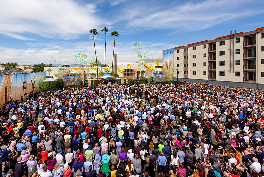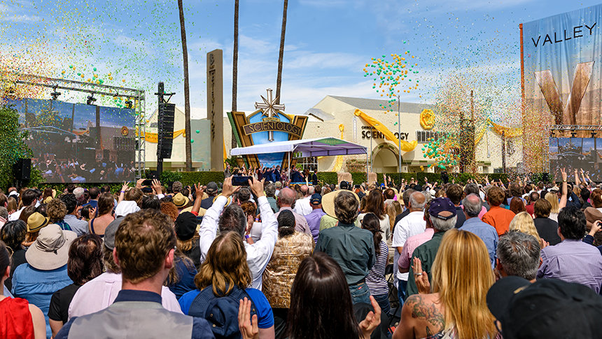 Έτσι, την Κυριακή 19 Μαρτίου στις 13:00, 5.000 Σαηεντολόγοι συγκεντρώθηκαν για να παρακολουθήσουν τη μεγαλύτερη Ιδανική Εκκλησία της Scientology να έρχεται στη ζωή στη Βόρεια Αμερική. Ήταν μια τελετή αντάξια με το μέγεθος, το εύρος και την ουσία της νέας έδρας του Βάλεϊ – από ένα ποτ-πουρί με μουσικές επενδύσεις κλασικών ταινιών που ζωντανεύουν τη χρυσή εποχή του κινηματογράφου, έως τον ύμνο «V σημαίνει Valley» που γράφτηκε και ενορχηστρώθηκε ειδικά για την περίσταση. Οι χιλιάδες παρευρισκόμενοι σηκώθηκαν όρθιοι γιορτάζοντας θριαμβευτικά και χειροκρότησαν κάθε ένθερμο αξιωματούχο εξυμνώντας τον ευρύτερο κοινωνικό αντίκτυπο της Εκκλησίας.