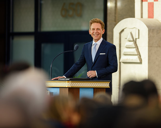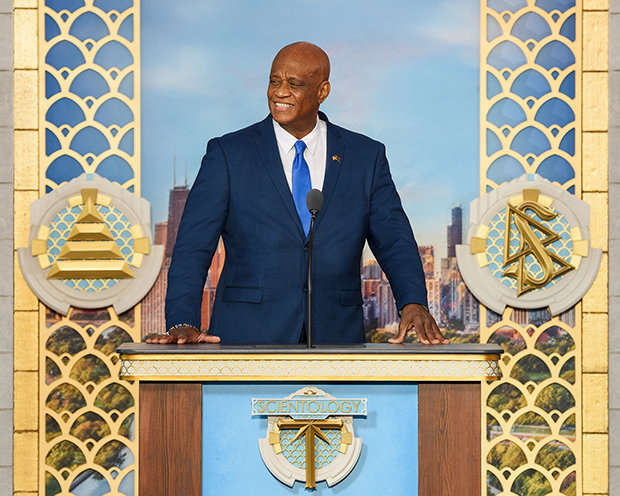 Ο Πρόεδρος του Συμβουλίου του Religious Technology Center, κ. Ντέιβιντ Μισκάβιτς, καλωσόρισε το κατενθουσιασμένο πλήθος προτού να κοπεί η κορδέλα. «Σήμερα αυτή η Δεύτερη Πόλη είναι πραγματικά και η Πρώτη» είπε ο κ. Μισκάβιτς. «Πριν πέσει όμως αυτή η κορδέλα της Πόλης των Ανέμων, είναι επίσης η στιγμή να αναγνωρίσετε αυτό που ήδη γνωρίζετε: ότι όπως ακριβώς το Σικάγο ξαναγεννήθηκε κάποτε, έτσι και σήμερα υπάρχει η ευκαιρία για μια νέα αρχή. Κι έτσι, υπάρχει η ευκαιρία για την αποκατάσταση της ικανότητας των ατόμων να ζουν μια καλύτερη ζωή, σύμφωνα με τη δική τους εκτίμηση και μαζί με τους συντρόφους τους, και να παίζουν ένα καλύτερο παιχνίδι».