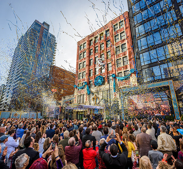 Χιλιάδες άτομα γιορτάζουν τα εγκαίνια ενός ανανεωμένου και αναγεννημένου κτηρίου-ορόσημου στο Σάουθ Λουπ, που προσφέρει ελπίδα και βοήθεια στους πάντες.