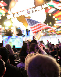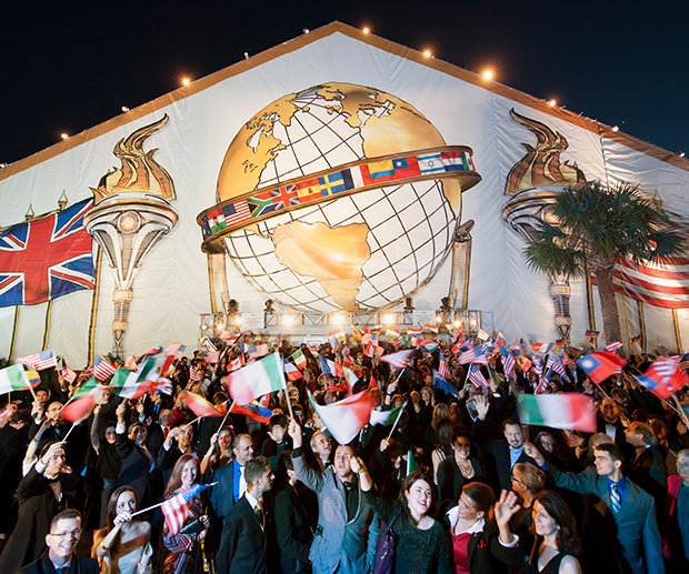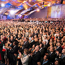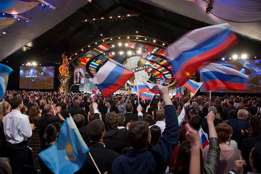 Περισσότεροι από 6.500 Σαηεντολόγοι, που αντιπροσωπεύουν περίπου 50 χώρες, προχωρούν προς τη Μεγάλη Αίθουσα για τον εορτασμό.