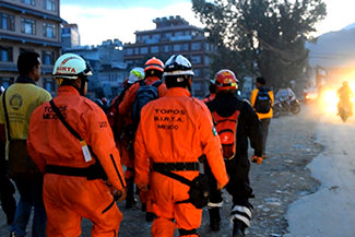 Οι Εθελοντές Λειτουργοί κατάφεραν να σταθούν στο ύψος μιας από τις τρανότερες προκλήσεις της χρονιάς, της κατάστασης που ακολούθησε τον καταστροφικό σεισμό των 7,8 ρίχτερ στο Νεπάλ. Η δόνηση είχε ως αποτέλεσμα πάνω από 9.000 θανάτους και 23.000 τραυματισμούς και άφησε πάνω από 2 εκατομμύρια αστέγους. Παρ’ όλα αυτά, μέσα σε ένα εικοσιτετράωρο, τα κεντρικά γραφεία των Εθελοντών Λειτουργών Διεθνώς, είχαν στείλει μήνυμα και είχαν ενεργοποιήσει το Λος Τόπος και την οργάνωση CINAT (Εθνικός Κύκλος Τεχνικών Βοηθείας) εκτός Κολομβίας. Εθελοντές Λειτουργοί από το Πακιστάν, την Ινδία και την Ταϊλάνδη ένωσαν τις δυνάμεις τους στην προσπάθεια εντοπισμού και διάσωσης με τις ομάδες από την Κολομβία, την Αυστραλία, την Ευρώπη και τις ΗΠΑ.