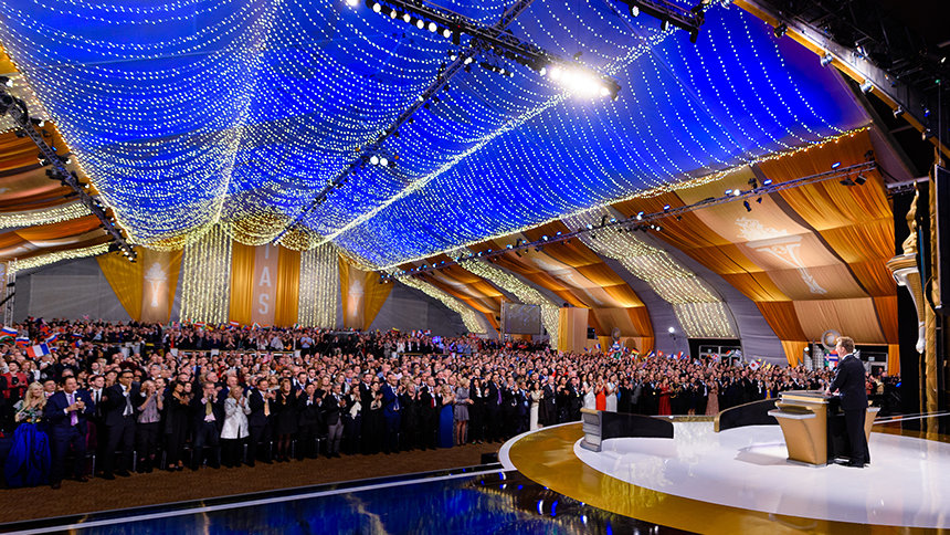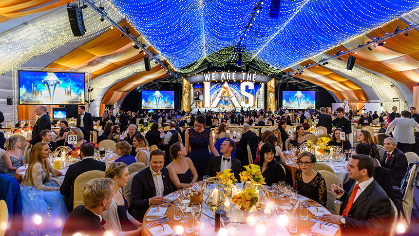 Η γιορτή από το βράδυ της Παρασκευής επεκτάθηκε το Σάββατο βράδυ, καθώς η μεγάλη σκηνή μεταμορφώθηκε στην ετήσια Χοροεσπερίδα των Patron. Το θεαματικό επίσημο δείπνο και ο ψυχαγωγικός εορτασμός διεξάγονται ως αναγνώριση εκείνων των μελών του IAS που υποστηρίζουν το ανθρωπιστικό έργο και τις πρωτοβουλίες που τιμώνται κατά τη διάρκεια του σαββατοκύριακου.
