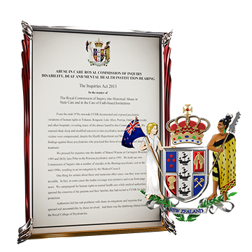 Η πρώτη είναι μια θρυλική ιστορία που ξεκίνησε το 1976 στη Νέα Ζηλανδία, όταν η CCHR αποκάλυψε τα βασανιστήρια που υπέστησαν παιδιά με ψυχοφάρμακα και ηλεκτροσόκ σε ένα κρατικό ψυχιατρικό ίδρυμα γνωστό ως Λέικ Άλις. Κατά τη διάρκεια δεκαετιών καταδίωξης, η CCHR υπέβαλε στην κυβέρνηση της Νέας Ζηλανδίας αποδεικτικά στοιχεία για κακοποίηση σε περισσότερα από 40 ιδρύματα. Καθώς δεν υπήρξε καμία ποινική δίωξη ή ανάληψη ευθυνών, η CCHR παρέπεμψε την υπόθεση στην Επιτροπή των Ηνωμένων Εθνών κατά των Βασανιστηρίων, η οποία εξέδωσε μια επίσημη εντολή προς την κυβέρνηση της Νέας Ζηλανδίας να διενεργήσει έρευνα. Η κυβέρνηση στη συνέχεια συγκάλεσε μια Βασιλική Επιτροπή για να εξετάσει ολόκληρο το σύστημα φροντίδας της χώρας, ενώ η CCHR διορίστηκε ως «βασικός συμμετέχων», παραδίδοντας 28.000 σελίδες αποδεικτικών στοιχείων και καταθέτοντας ενώπιον της επιτροπής.