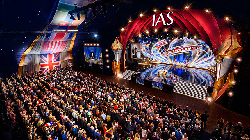 «Απόψε γιορτάζουμε 40 χρόνια ιστορίας του IAS» είπε ο κ. Μισκάβιτς, «πράγμα που ισοδυναμεί με 4.000 χρόνια σε οποιοδήποτε άλλο βιβλίο ιστορίας». Μέχρι αυτό το σημείο, τη γέννηση του IAS το 1984, η παρουσία της Scientology συμπεριλάμβανε 39 κράτη. Ενώ σήμερα ο κ. Μισκάβιτς παρουσίασε το γεγονός ότι υπάρχουν μέλη του IAS σε 184 χώρες.
