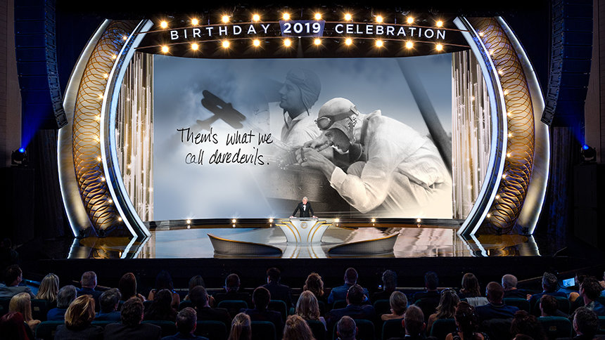 Η παρουσίαση ξεκίνησε 90 μέτρα πάνω από χωράφια με καλαμπόκι στις Μεσοδυτικές Πολιτείες όπου ένας εικοσάχρονος πιλότος ακροβατικών πτήσεων ονόματι «Φλας» Χάμπαρντ έδειξε στους κατοίκους της περιοχής, συμπεριλαμβανομένου ενός εννιάχρονου λάτρη των μοντέλων αεροπλάνου, τι σημαίνει να πετάς. Αυτό το αγόρι –τώρα ένας μεγάλος άντρας– θυμήθηκε πώς, αφότου προσγειώθηκε σε μια φάρμα με αγελάδες, ο νεαρός πιλότος έδωσε στους περίεργους κατοίκους –έναν προς έναν– την ευκαιρία να πετάξουν πάνω από τα χωράφια. Ήταν μια περίσταση που έκανε τόσο μεγάλη εντύπωση στους κατοίκους της πόλης, που της αποδόθηκε φόρος τιμής μισό αιώνα αργότερα με την Ημέρα για τον Λ. Ρον Χάμπαρντ.