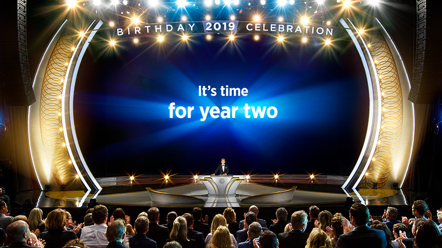 Η βραδιά στη συνέχεια έκανε fast forward στο 2019 και μια τελετή απονομής βραβείων που τόνισε το πνεύμα της βραδιάς – έναν εορτασμό εξάπλωσης. Πάνω από 40 χρόνια πριν, ο Ρον ρωτήθηκε τι ήθελε για τα γενέθλιά του. Η απάντησή του ήταν το δώρο της ευημερίας των Οργανισμών και των Μίσιον της Scientology στο όνομα της παράδοσης της πνευματικής ελευθερίας. Με το πέρασμα των χρόνων, οι Εκκλησίες της Scientology σε όλο τον κόσμο έχουν δημιουργήσει ένα παιχνίδι εμπνευσμένο από αυτό, διαγωνίζονται σε μια από τις τέσσερις κατηγορίες, τρέχοντας στη γραμμή του τερματισμού. Φέτος, οι πρωταθλητές που μπήκαν στον κύκλο των νικητών πέτυχαν όλοι τους αποδόσεις που έσπασαν τα ρεκόρ. Αυτοί ήταν οι εξής: Η Μίσιον της Scientology της Ουλμ της Γερμανίας, η Εκκλησία της Scientology της Στουτγάρδης της Γερμανίας, ο Ανώτερος Οργανισμός και Σαιντ Χιλ στο Ηνωμένο Βασίλειο, και το Ηπειρωτικό Γραφείο-Σύνδεσμος της Ευρώπης.