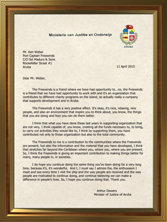 - Μια αναγνώριση της εκπαίδευσης πάνω στα ανθρώπινα δικαιώματα για τις δυνάμεις άμυνας του νησιού του Αγίου Χριστόφορου, που τόνισε: «Η Νεολαία υπέρ των Ανθρωπίνων Δικαιωμάτων δημιουργεί τεράστια διαφορά».