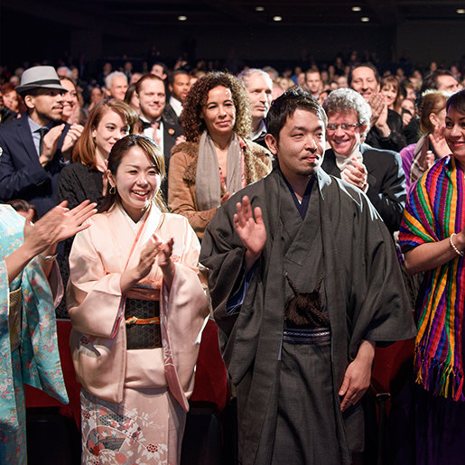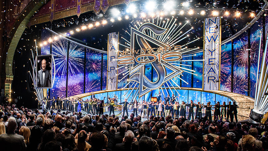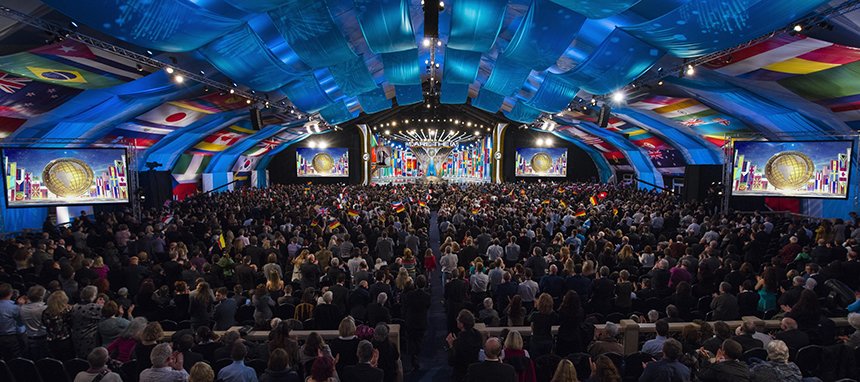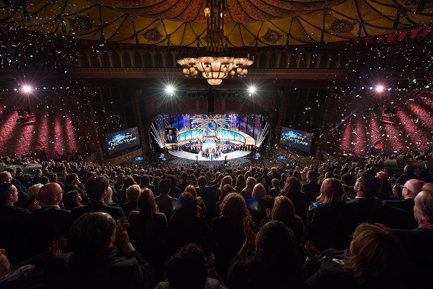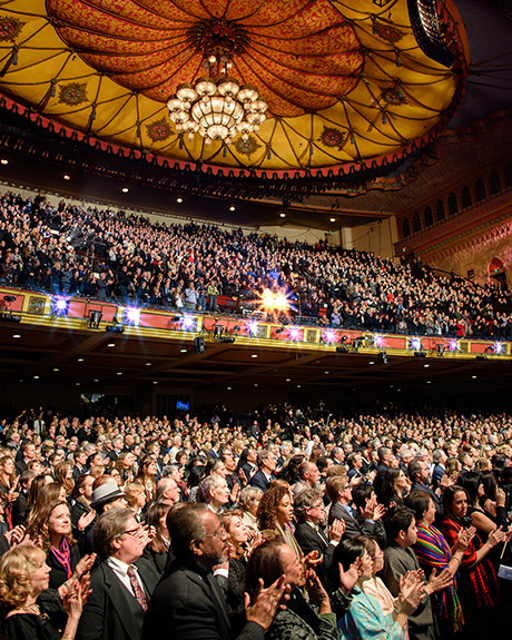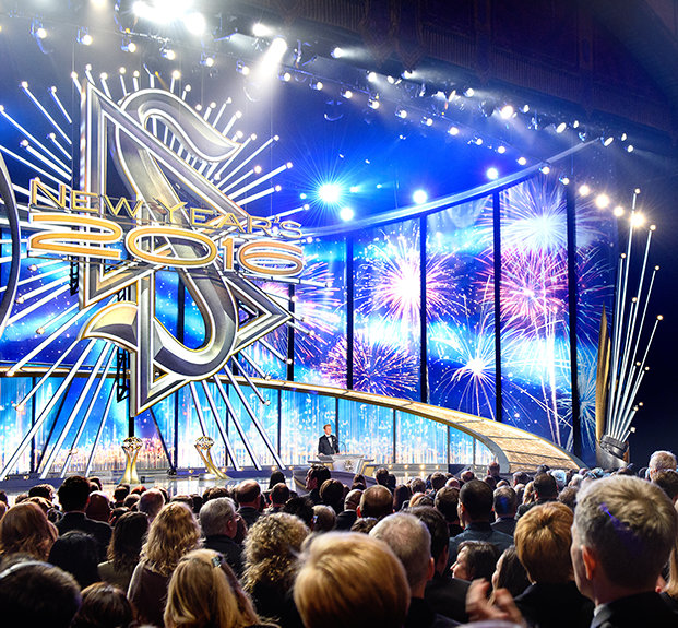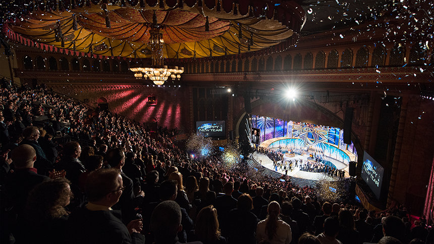Χιλιάδες άτομα γιορτάζουν για τα εντυπωσιακά επιτεύγματα των προηγούμενων δώδεκα μηνών σ’ ένα εορταστικό πρωτοχρονιάτικο γκαλά στο θρυλικό Αμφιθέατρο Σράιν στο Λος Άντζελες, έχοντας κατά νου ότι το 2015 αποτέλεσε περίοδο ιστορικής εξάπλωσης της θρησκείας μας.