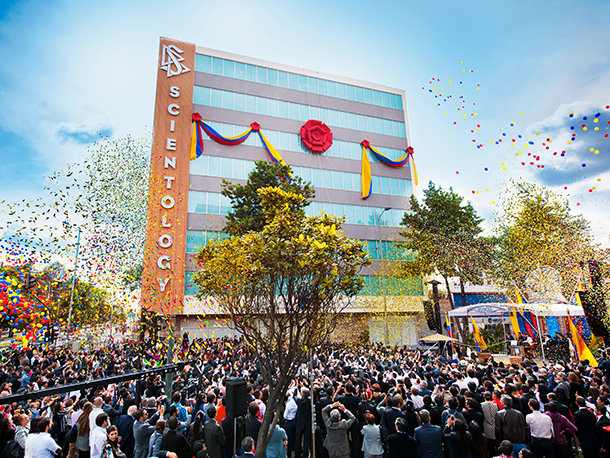Τα εγκαίνια της μεγαλοπρεπούς Ιδανικής Εκκλησίας της Σαηεντολογίας στην Μποκοτά της Κολομβίας στις 5 Ιουλίου.