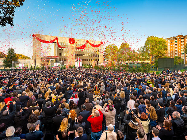 Το ενθουσιώδες κοινό είδε τον εορτασμό του Νέου Έτους να φτάνει στο αποκορύφωμά του, όταν ο Κος Μισκάβιτς παρουσίασε τον μεγαλύτερο Ιδανικό Οργανισμό διεθνώς που εγκαινιάστηκε μεγαλειωδώς στις 31 Οκτωβρίου στην πολιτιστική πρωτεύουσα της Ιταλίας, το Μιλάνο. Ο νέος Ιδανικός Οργανισμός, με εμβαδόν 9.000 τετραγωνικά μέτρα σε ένα οικόπεδο που καλύπτει 6 στρέμματα, φαντάζει από μακριά και επιστεγάζει μια χρονιά για την Εκκλησία της Σαηεντολογίας που χαρακτηρίστηκε από θεαματική ανάπτυξη και έθεσε τη βάση για άλλη μια θαυμαστή εκπληκτική χρονιά επιτευγμάτων.