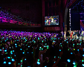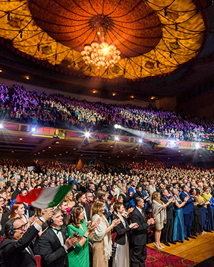 Αμέσως, το Shrine γέμισε με εορταστικά φώτα και μουσική. Το ακροατήριο σηκώθηκε και παρέμεινε όρθιο καθ’ όλη τη διάρκεια της εναρκτήριας συναυλίας που περιλάμβανε μια σειρά διεθνών καλλιτεχνών.