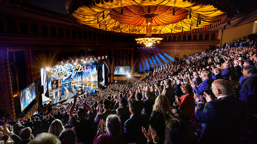 ΤΟ ΜΕΓΑΛΕΙΟ ΤΟΥ SHRINE AUDITORIUM στο Λος Άντζελες προετοιμάζει το σκηνικό καθώς ένα πλήθος περισσότερων από 6.500 Scientologist και καλεσμένων συγκεντρώνεται στην κατάμεστη αίθουσα για τον θεαματικό Εορτασμό της Πρωτοχρονιάς της Εκκλησίας της Scientology.