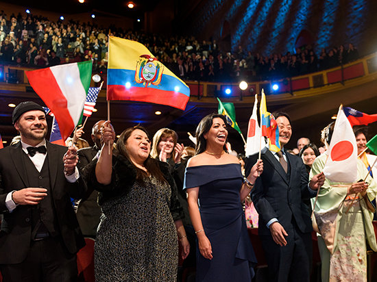 Είναι ό,τι θα περίμενε κανείς από ένα πρωτοχρονιάτικο θέαμα στο κέντρο του Λος Άντζελες: μια εκθαμβωτική μείξη κομψότητας, ενέργειας και προσδοκιών. Τα σμόκιν και οι τουαλέτες. Ο εμβληματικός χώρος της εκδήλωσης. Ο ήχος του ενθουσιασμού. Όλα αυτά προετοίμασαν το σκηνικό για μια αξέχαστη βραδιά, καθώς περισσότεροι από 6.500 συμμετέχοντες συνέρρευσαν στο Shrine Auditorium.
