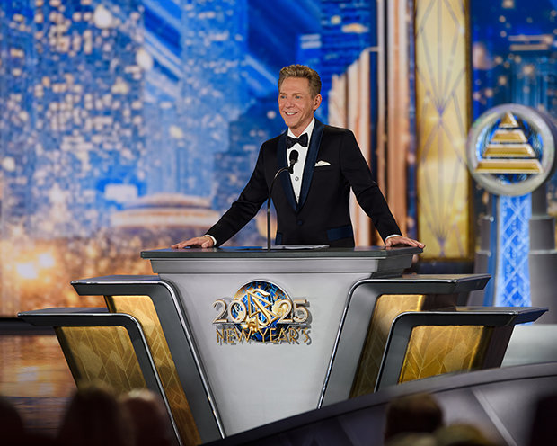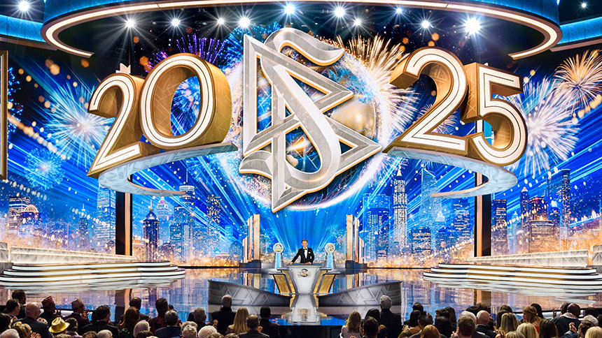 Η εκδήλωση ξεκίνησε με μια συναυλία με μεγάλα ονόματα που έκανε το κοινό να σηκωθεί όρθιο. Η προσμονή έφτασε στα ύψη καθώς στήλες αστραφτερών φώτων πλαισίωσαν τη σκηνή και ένα γιγαντιαίο 2025 κατέβηκε από την οροφή.
