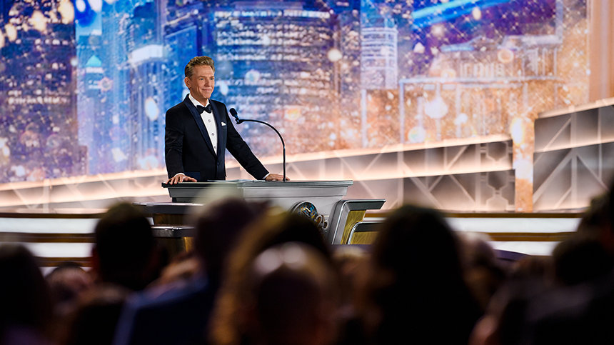 Ο κ. Μισκάβιτς προετοιμάζει το σκηνικό για μια αξέχαστη βραδιά παρουσιάζοντας τα αξιοσημείωτα επιτεύγματα και την άνευ προηγουμένου ανάπτυξη της Εκκλησίας καθ’ όλη τη διάρκεια του 2024.
